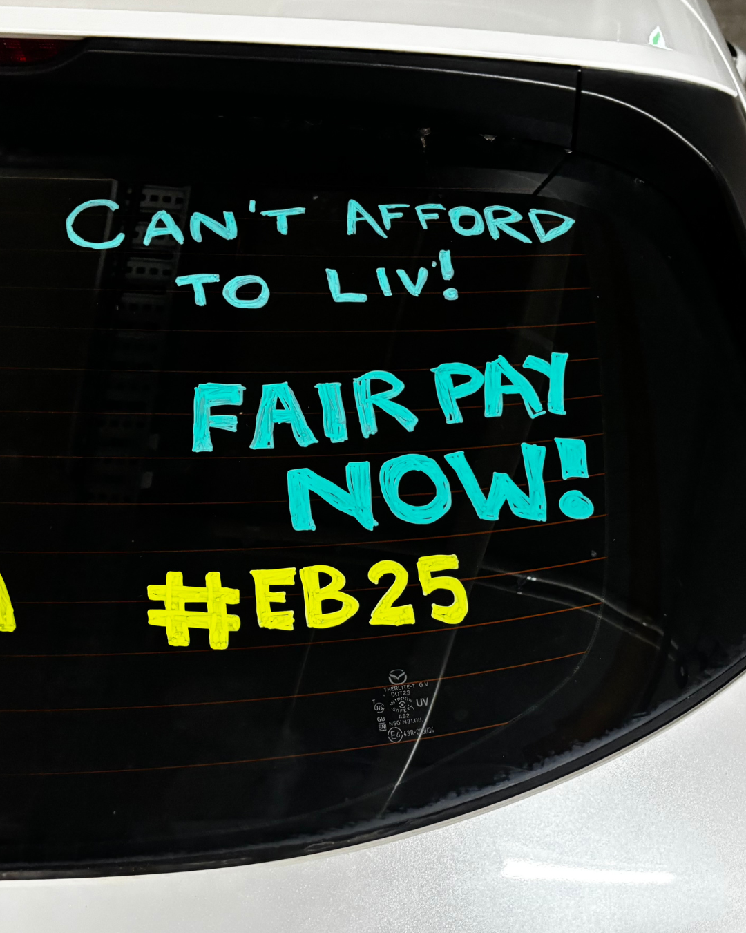 Every chalked car will be a moving billboard for fair pay, seen in car parks, on roads, and outside worksites across the state.