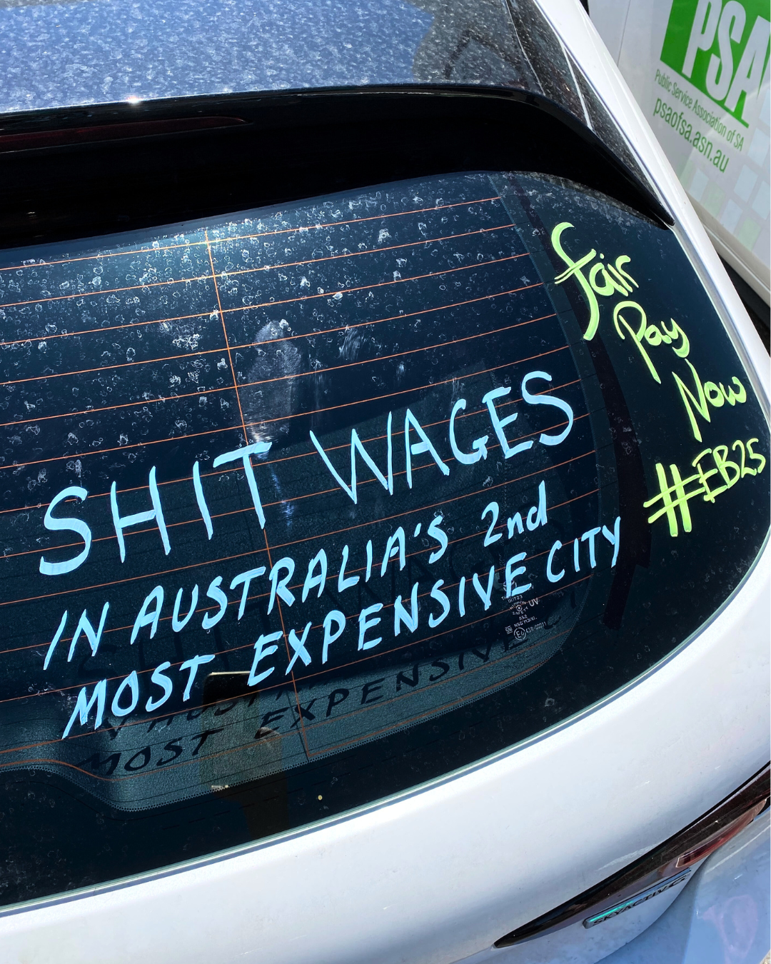 Grab a chalk marker and write your message on your car windows - in support of a fair pay rise for the SA Public sector!