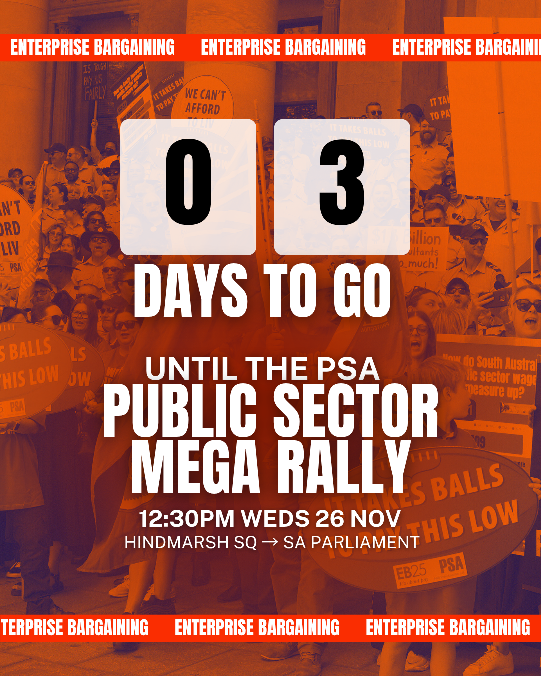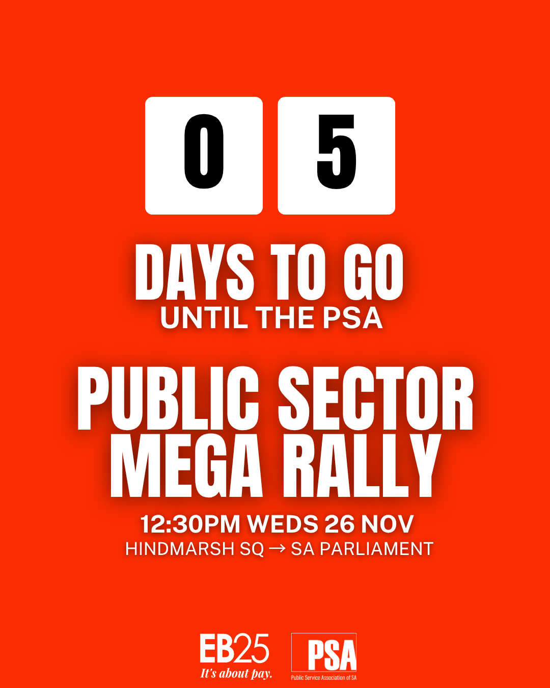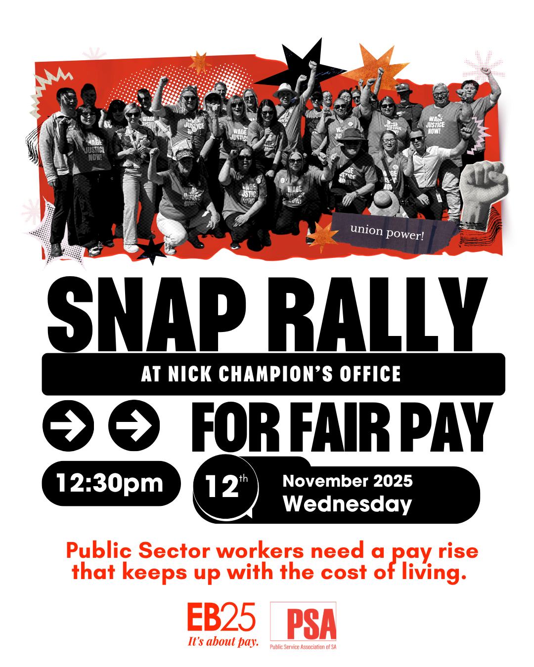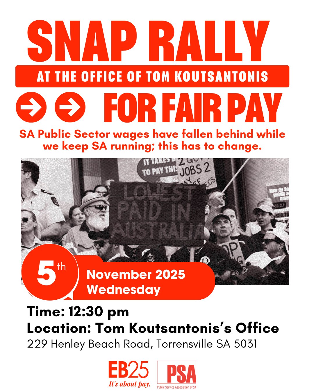 The PSA is keeping the pressure firmly on the State Government to deliver a pay rise that truly reflects the worth of public sector workers and the vital work they do for South Australians every day. Our next rally will be on 12 November at Nick Champion's office.