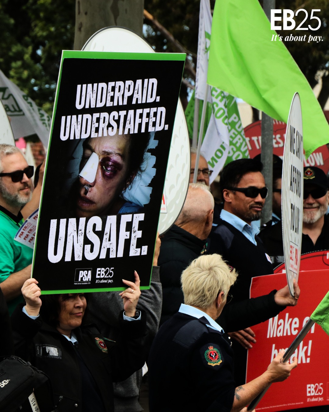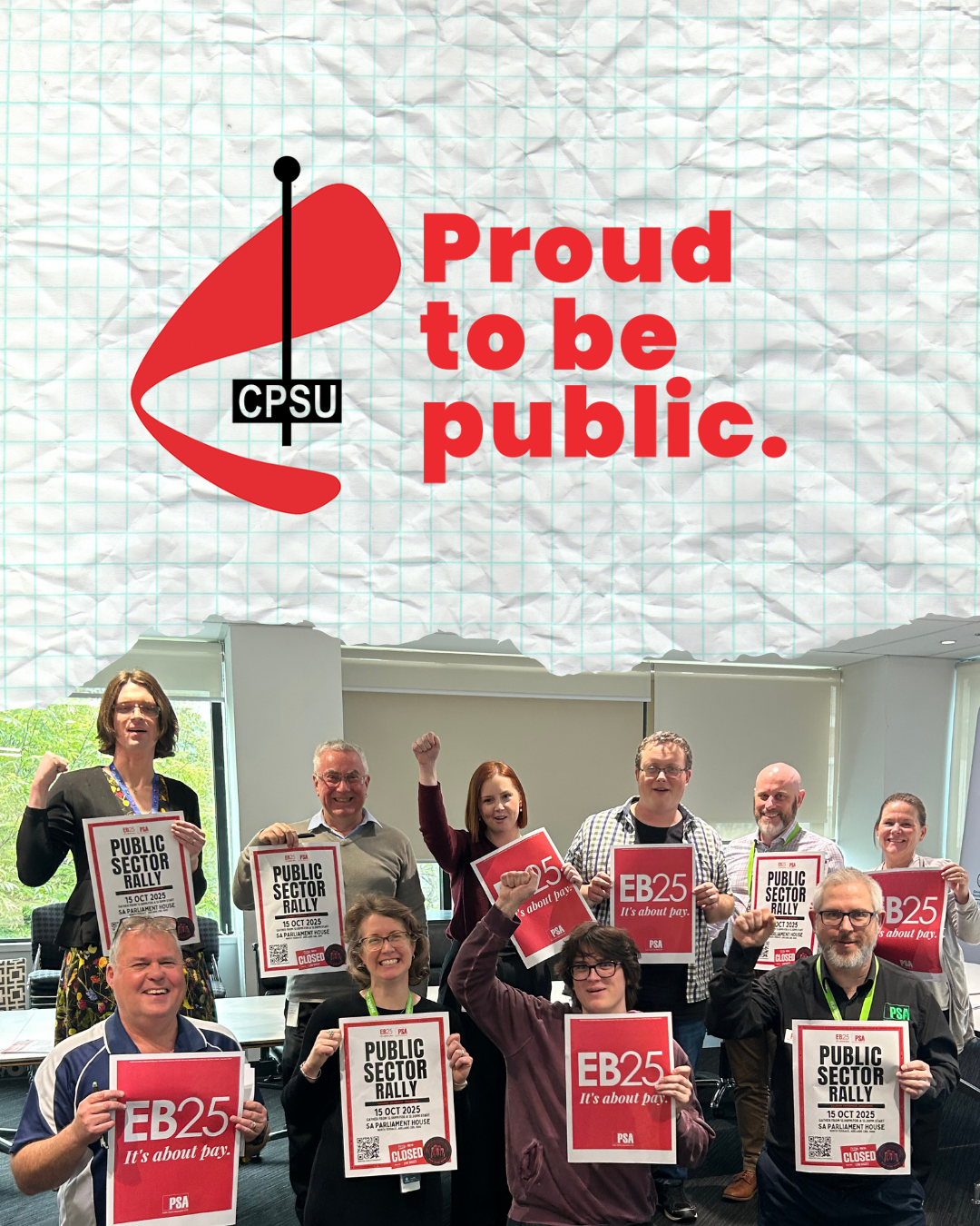3. Send us a photo of your sign at the rally, you can email us: enquiries@psaof.sa.asn.au, comment or DM a photo of your sign on our social media Instagram: @psa_of_sa or Facebook: /PublicServiceAssociationSA