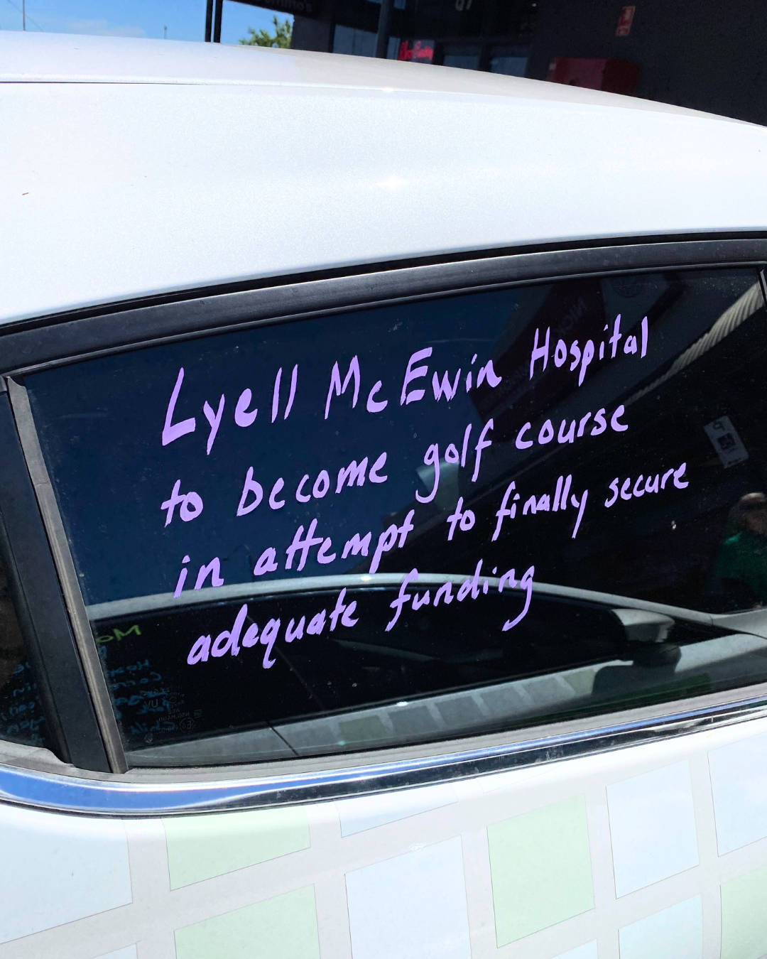 Every chalked car becomes a moving billboard in car parks, on the road, and outside worksites right across the state.